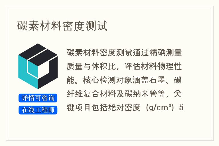 以上是关于碳素材料密度测试相关介绍,如果您还有其他疑问,可以咨询在线工程师提交您的需求,为您提供一对一解答。