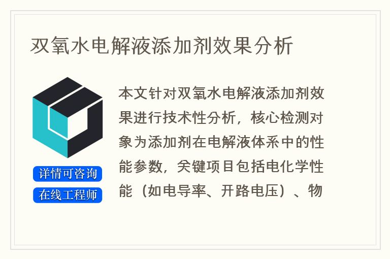 以上是关于双氧水电解液添加剂效果分析相关介绍,如果您还有其他疑问,可以咨询在线工程师提交您的需求,为您提供一对一解答。