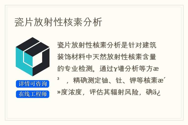 以上是关于瓷片放射性核素分析相关介绍,如果您还有其他疑问,可以咨询在线工程师提交您的需求,为您提供一对一解答。